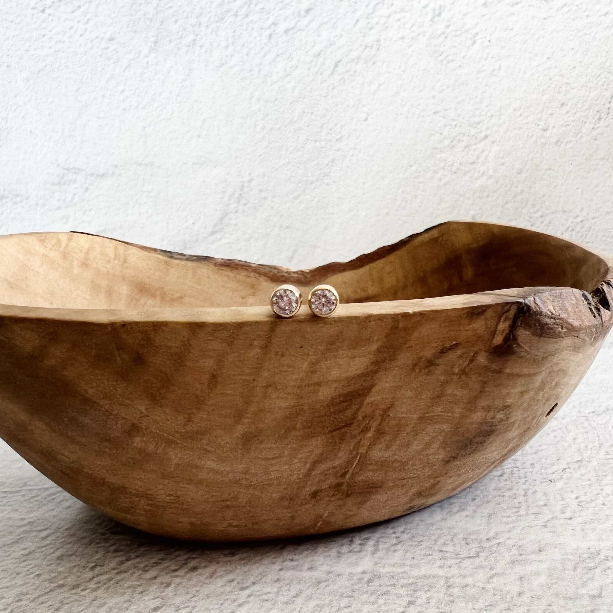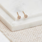 The definition of dainty! This pair is teeny, tiny 3.5mm round Cubic Zirconia set inside a 14k solid gold bezel setting and is the perfect pair to make a subtle statement. Wear alone for a minimalist, classic look, or for those with secondary piercings, pair with our hoops or other studs for the perfect amount of sparkle.