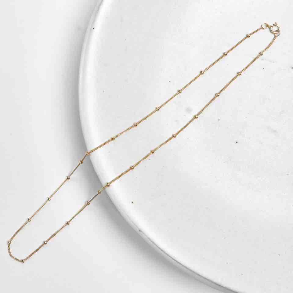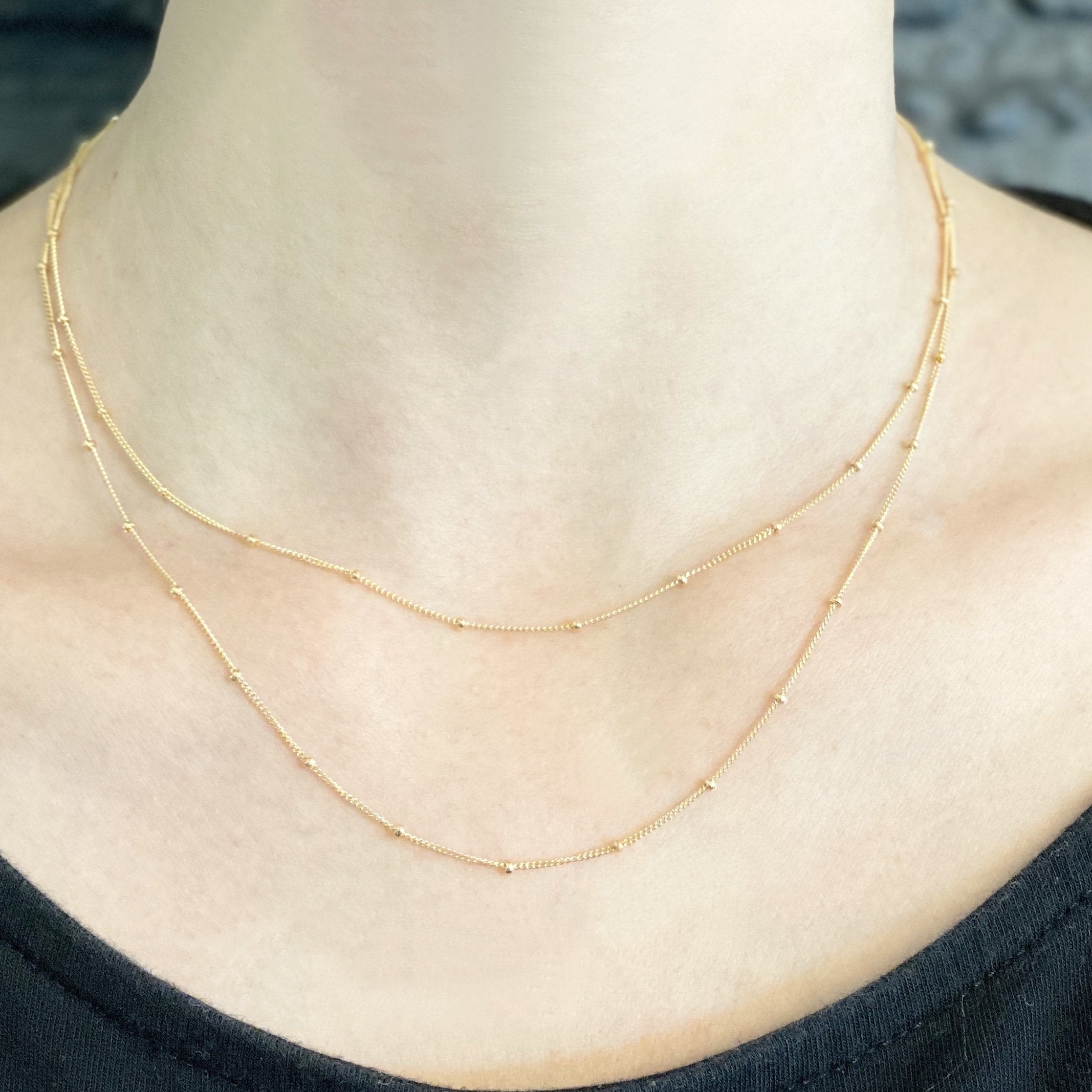 Delicate 14k gold filled satellite chain necklace. Wear alone for a minimalist look, or pair with our Ball Chain and/or Cable Chain necklaces for a layered look.