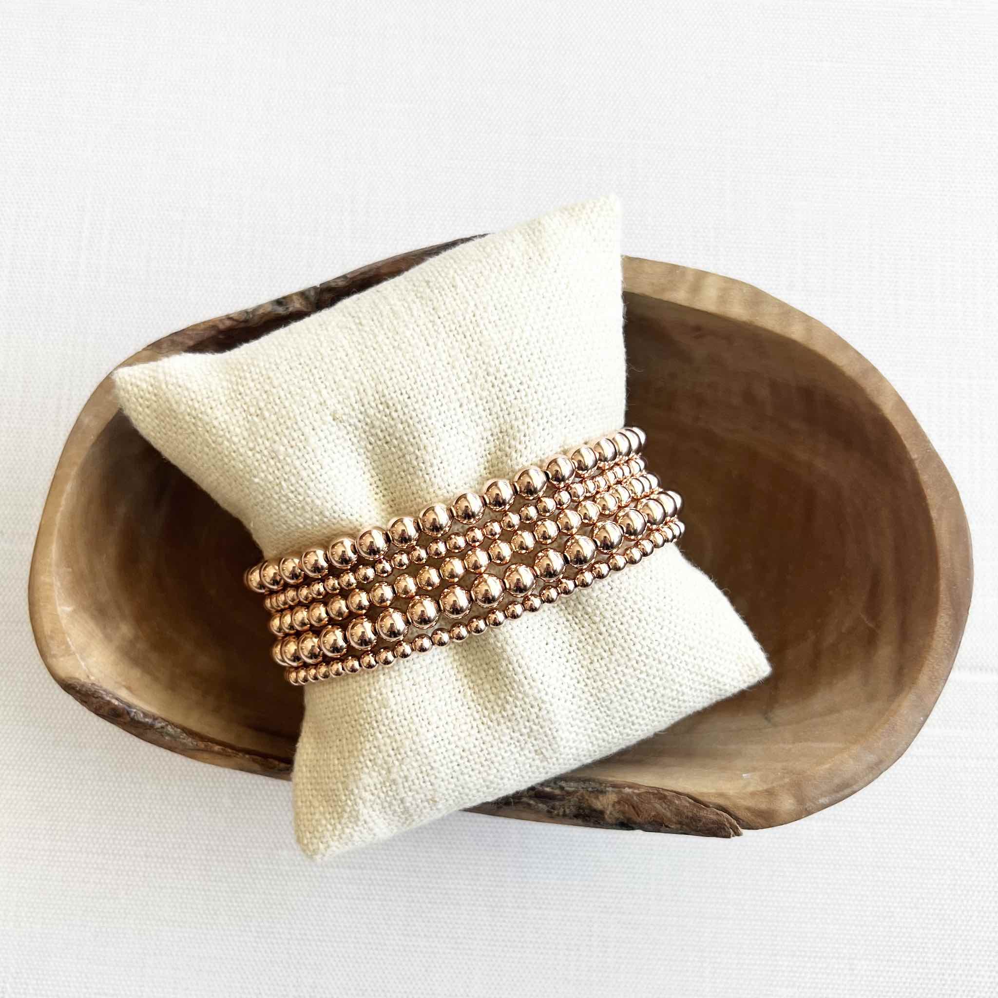 • The Quintette Stack includes: (2) 3mm Bead Bracelets, (1) 4mm Bead Bracelet and (2) 5mm Bead Bracelets
