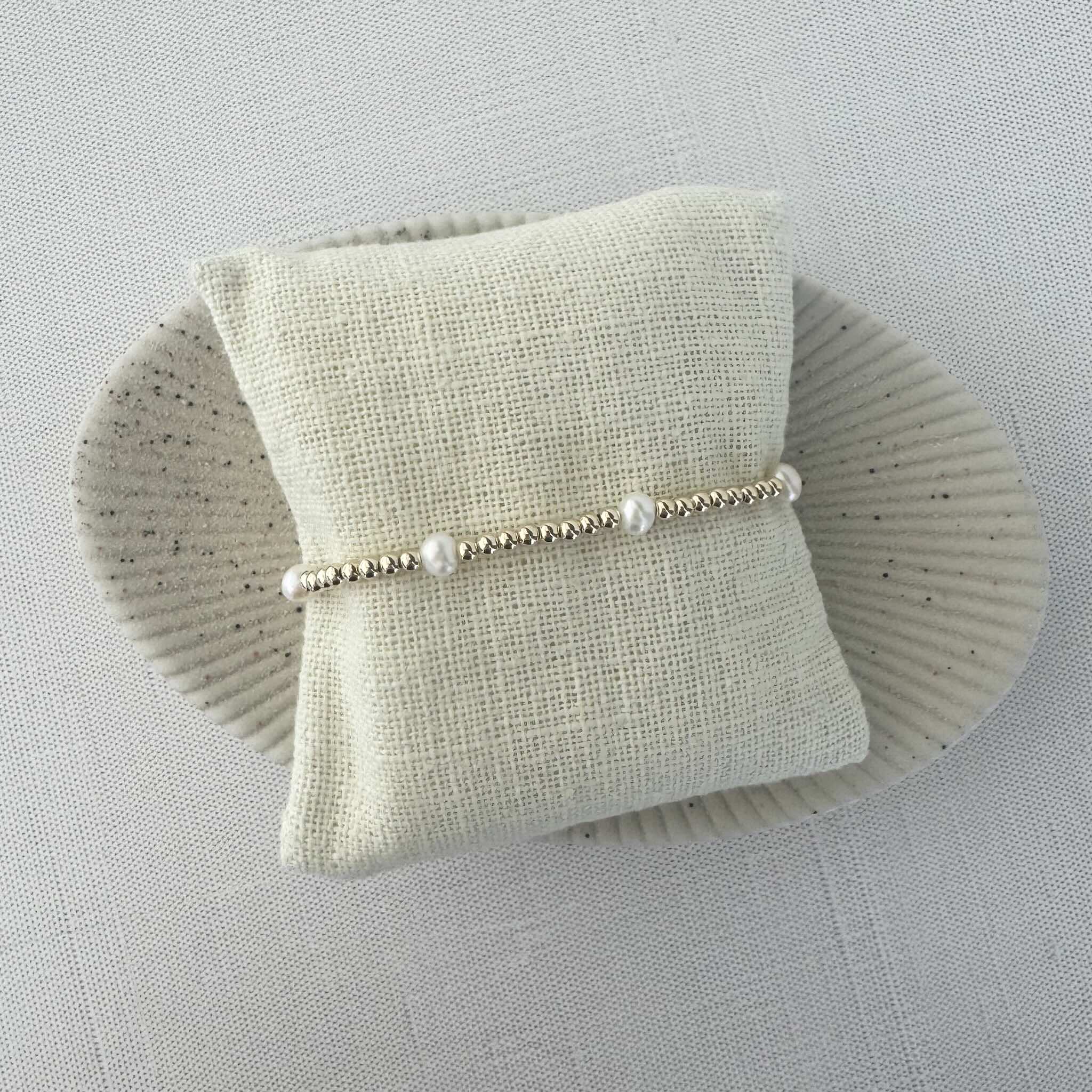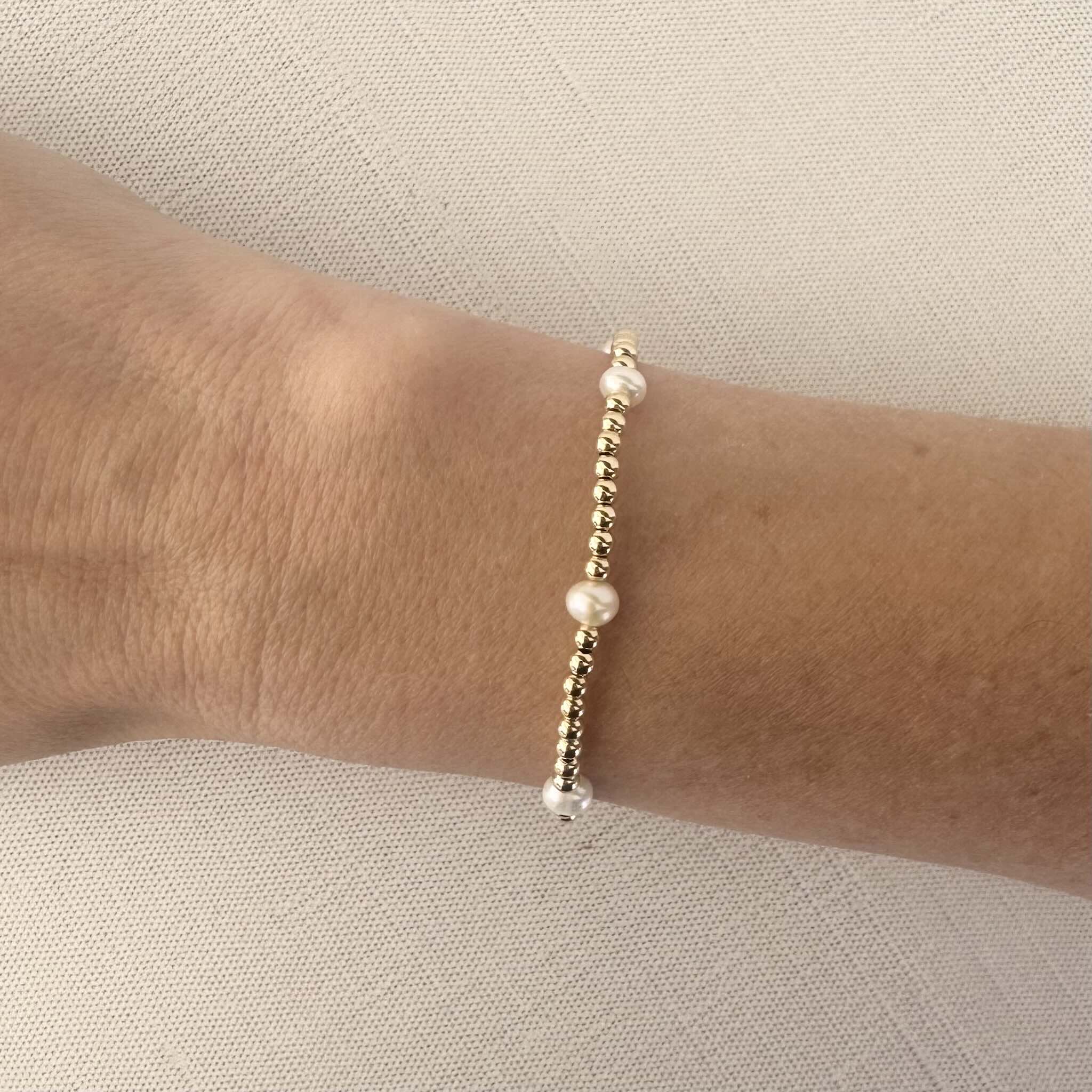 The Infinity Pearl Bracelet is the perfect mix of pearls and gold-filled beads, and is easy to dress up or down.