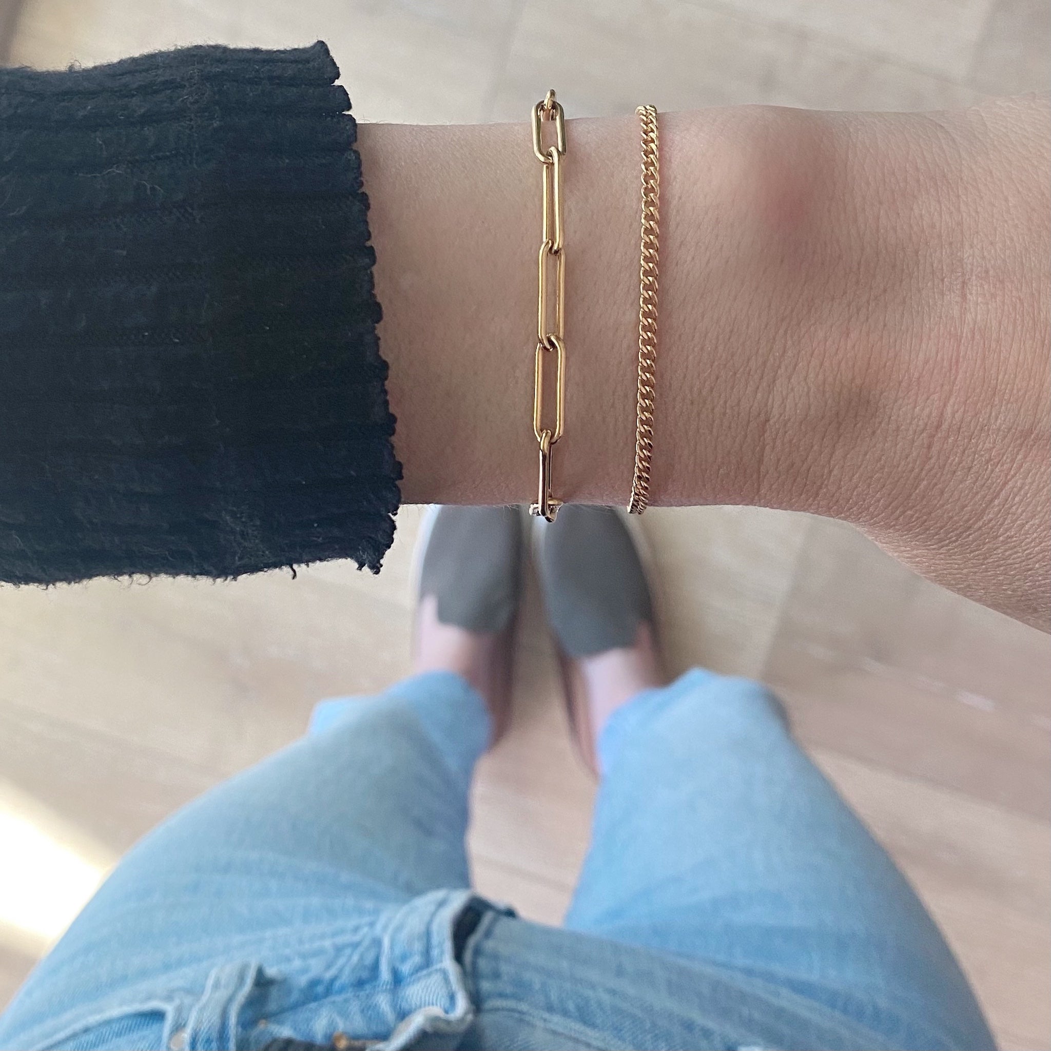The Paperclip Chain bracelet paired with a dainty Curb Chain (both adjustable up to 7.5"!) make the perfect duo on your wrist!