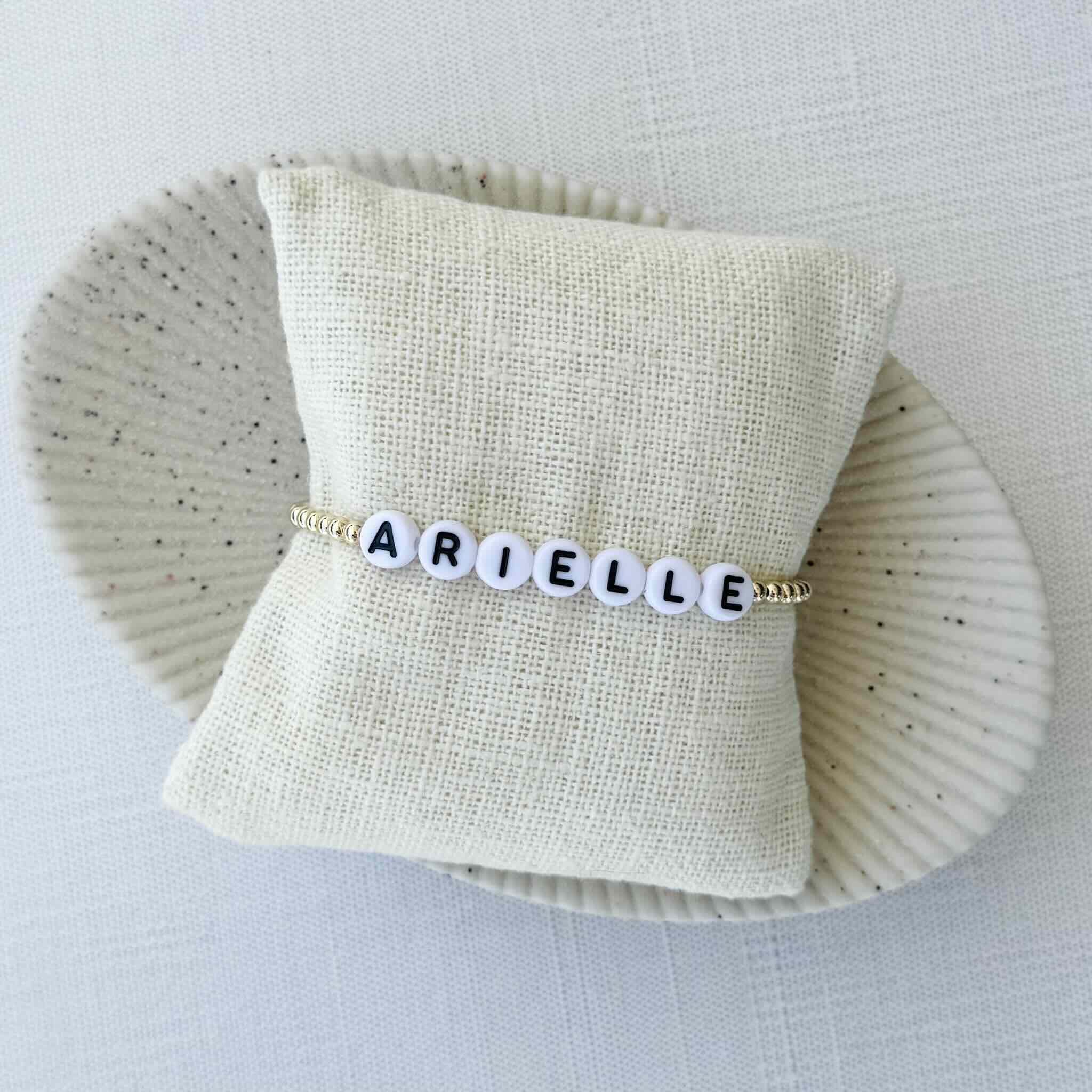 Make it theirs. Spell out something special on a gold-filled beaded bracelet made just for them. A name, a word, a reminder they’ll love to wear every day.