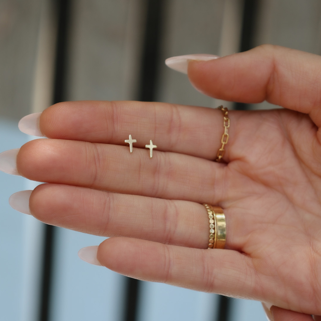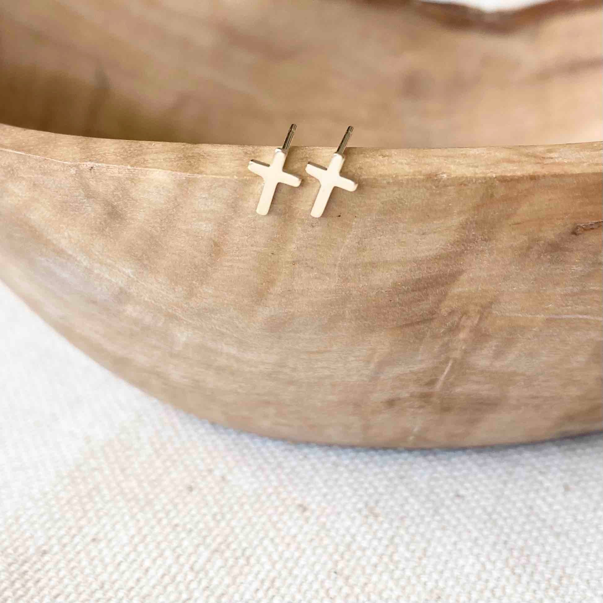Tiny 6mm Cross Studs in your choice of 14k solid gold or 14k gold filled. The perfect gift idea to commemorate a religious celebration or a personal gift to yourself because #selfcare.