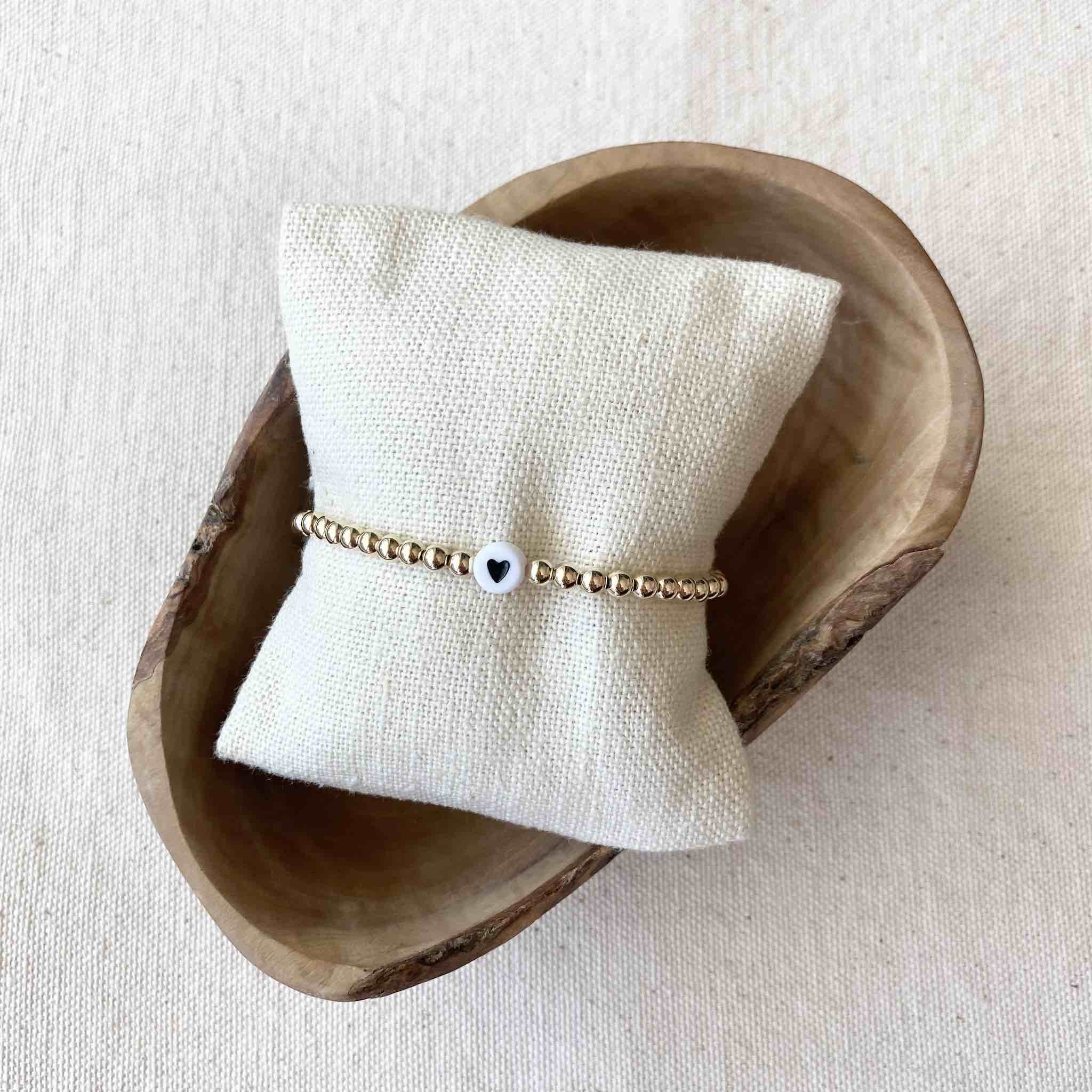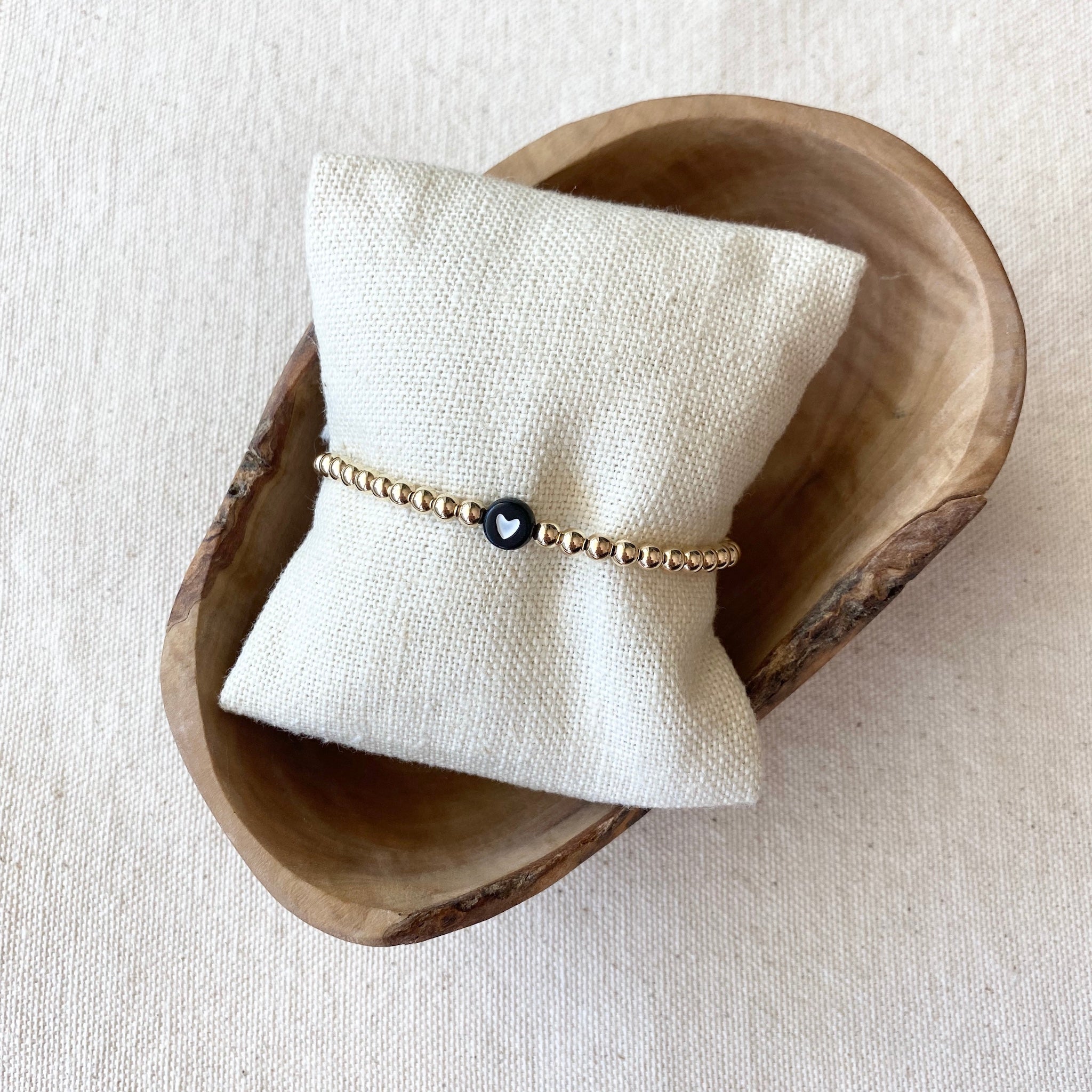 A simple heart can sometimes say it all. Pair with your personalized name bracelet or your other favorite gold beaded bracelets for a sweet little daily reminder you can look at daily.