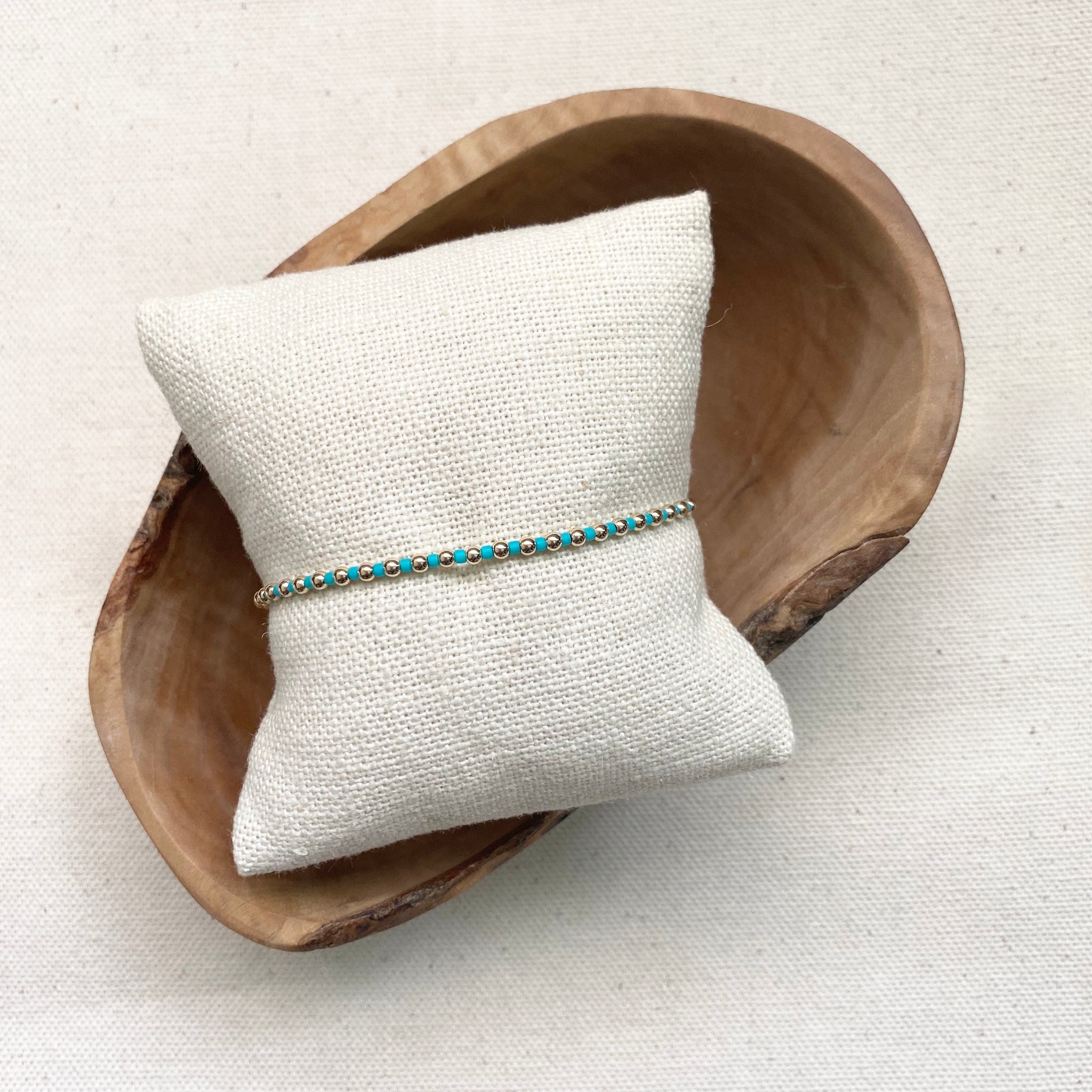 Add a little color to your wrist with this dainty single bracelet made with a mix of 14k gold filled beads and colored seed beads! Wear alone or add to your existing stack.