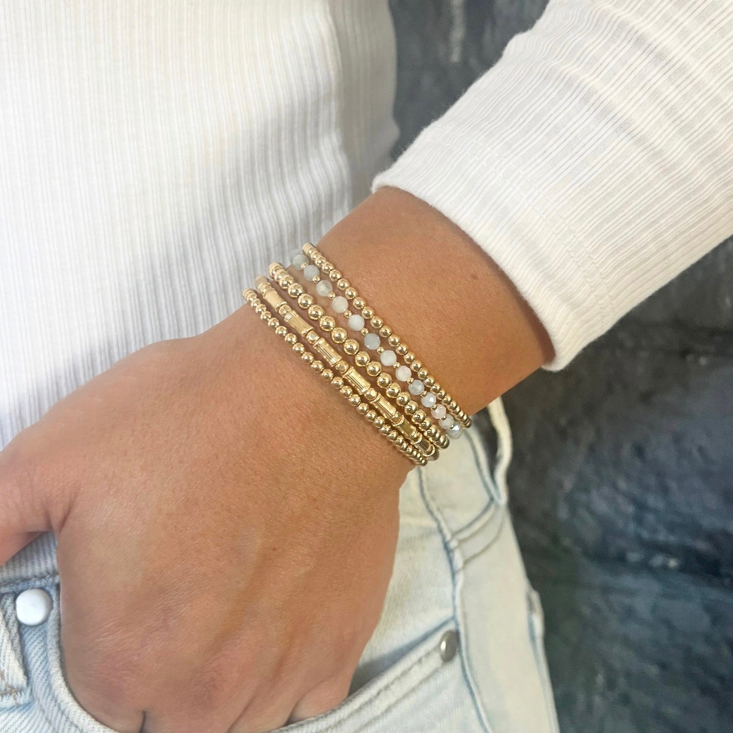 Made with precious stones including Aquamarine and Tourmaline, these bracelets add the perfect touch of color to your bracelet stack. Sizes/colors/pattern of bracelets may differ slightly as these are natural stones.